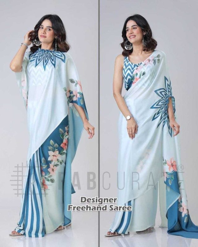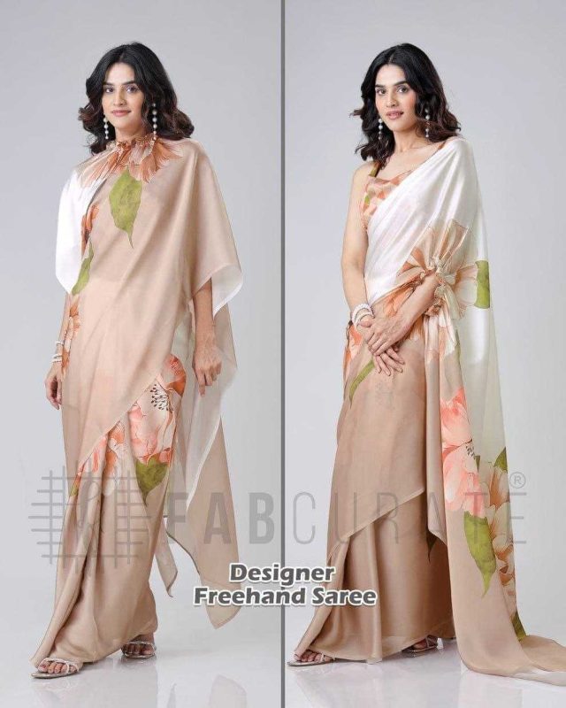 Georgette Freehand Designer Sarees Ready To Wear Satin Sarees